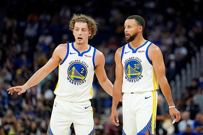 金州勇士正在进行训练营期间的日常训练活动,训练结束后,球队的后场新星布兰丁-波杰姆斯基(Brandin Podziemski)接受了记者的采访,他也在采访中谈到了自己为何能快速适应与斯蒂芬-库里(Stephen Curry)和吉米-巴特勒(Jimmy Butler)这两名老将的配合相关的问题。