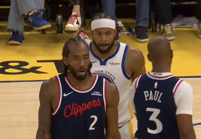 在另外一场比赛中,勇士跟快船在上半场各打一节好球,勇士首节净胜快船8分,第二节勇士仅得13分,输给快船11分,半场快船49-46领先,其中哈登个人拿到20分。第三节两队投篮不断打铁,还剩4分钟时,巴特勒命中三分,库里反击上篮打进后,勇士68-61打停快船。勇士继续扩大分差,领先快船15分了,末节巴特勒上篮打进后,80-63,比赛要花。