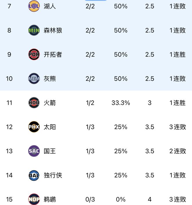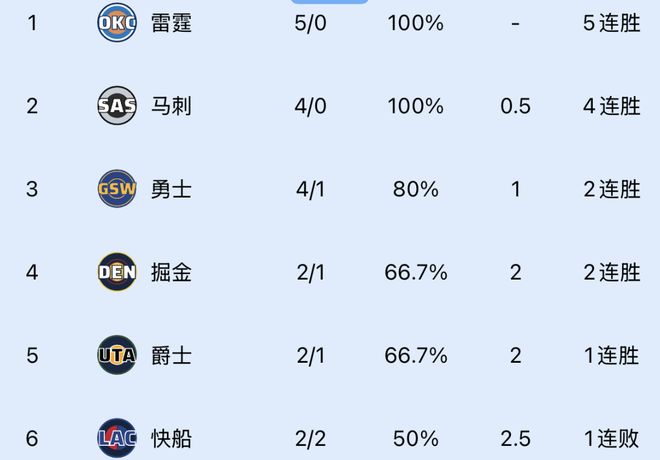随着勇士大胜快船19分,雷霆5连胜,西部最新排名:5队同为2胜2负