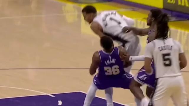 这就是老将在比赛当中发挥的作用,斯玛特这种靠着造进攻犯规拿到最佳防守球员的老油子,给文班这个新人好好上了一课。老将的经验是会传染的,文班末节关键时刻又被八村造了一个带球撞人六犯下场。