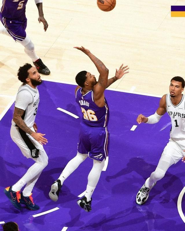 与打太阳那场比赛不同,马刺打湖人投出了39.4%的三分命中率,尤其是巴恩斯在底角回应了大量的空位三分。所以在文班发挥不佳的情况下,马刺依然和湖人打到了最后时刻。但值得一提是,湖人成功把文班在最后时刻给搞下去了。