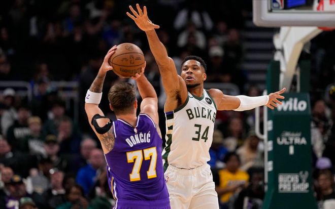 勒布朗·詹姆斯缺阵也无妨,湖人卢卡·东契奇对阵雄鹿展现统治力