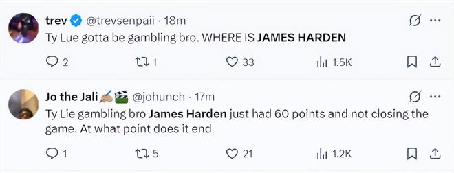3.泰-卢肯定是在赌博啊。詹姆斯-哈登去哪儿了?